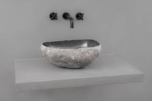 Steinvask - Unik servant i naturlig formet elvestein fra Bali.