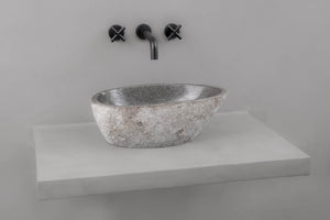 Steinvask - Unik servant i naturlig formet elvestein fra Bali.