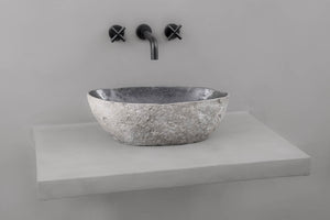 Farger og former hentet fra naturen har en beroligende effekt og passer derfor perfekt på badeværelset. Bring frem den gode følelsen av ro og harmoni med en håndlaget servant i nydelig naturstein.