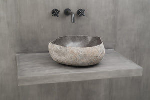 Steinvask - Unik servant i naturlig formet elvestein fra Bali.