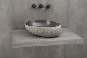 Steinvask - Unik servant i naturlig formet elvestein fra Bali.
