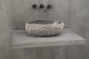 Steinvask - Unik servant i naturlig formet elvestein fra Bali.
