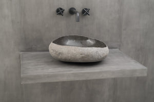 Steinvask - Unik servant i naturlig formet elvestein fra Bali.