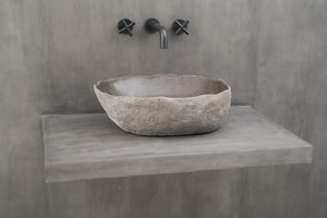 Steinvask - Unik servant i naturlig formet elvestein fra Bali.