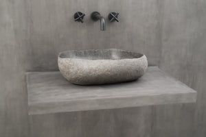 Steinvask - Unik servant i naturlig formet elvestein fra Bali.