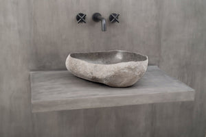 Steinvask - Unik servant i naturlig formet elvestein fra Bali.