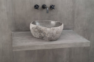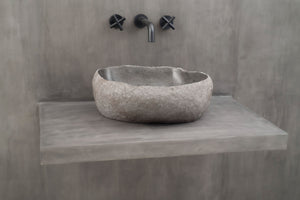 Steinvask - Unik servant i naturlig formet elvestein fra Bali.