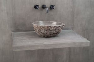 Farger og former hentet fra naturen har en beroligende effekt og passer derfor perfekt på badeværelset. Bring frem den gode følelsen av ro og harmoni med en håndlaget servant i nydelig naturstein.