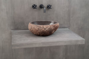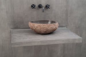 Farger og former hentet fra naturen har en beroligende effekt og passer derfor perfekt på badeværelset. Bring frem den gode følelsen av ro og harmoni med en håndlaget servant i nydelig naturstein.