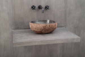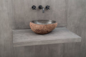 Farger og former hentet fra naturen har en beroligende effekt og passer derfor perfekt på badeværelset. Bring frem den gode følelsen av ro og harmoni med en håndlaget servant i nydelig naturstein.