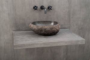 Farger og former hentet fra naturen har en beroligende effekt og passer derfor perfekt på badeværelset. Bring frem den gode følelsen av ro og harmoni med en håndlaget servant i nydelig naturstein.