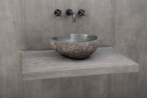 Steinvask - Unik servant i naturlig formet elvestein fra Bali.