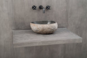 Farger og former hentet fra naturen har en beroligende effekt og passer derfor perfekt på badeværelset. Bring frem den gode følelsen av ro og harmoni med en håndlaget servant i nydelig naturstein.