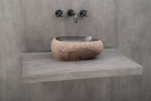 Farger og former hentet fra naturen har en beroligende effekt og passer derfor perfekt på badeværelset. Bring frem den gode følelsen av ro og harmoni med en håndlaget servant i nydelig naturstein.