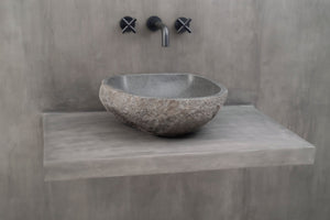 Steinvask - Unik servant i naturlig formet elvestein fra Bali.