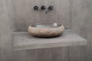 Steinvask - Unik servant i naturlig formet elvestein fra Bali.