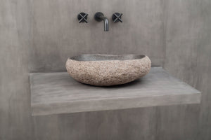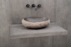 Steinvask - Unik servant i naturlig formet elvestein fra Bali.