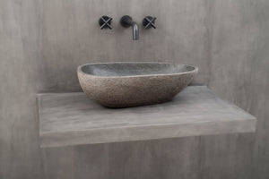 Steinvask - Unik servant i naturlig formet elvestein fra Bali.