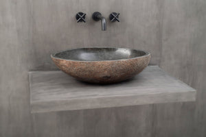 Farger og former hentet fra naturen har en beroligende effekt og passer derfor perfekt på badeværelset. Bring frem den gode følelsen av ro og harmoni med en håndlaget servant i nydelig naturstein.
