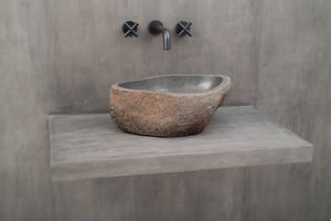 Steinvask - Unik servant i naturlig formet elvestein fra Bali.