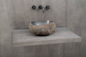 Steinvask - Unik servant i naturlig formet elvestein fra Bali.