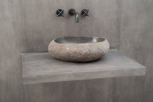 Steinvask - Unik servant i naturlig formet elvestein fra Bali.