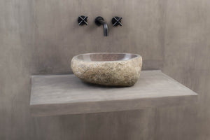 Steinvask - Unik servant i naturlig formet elvestein fra Bali.