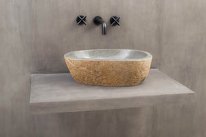 Farger og former hentet fra naturen har en beroligende effekt og passer derfor perfekt på badeværelset. Bring frem den gode følelsen av ro og harmoni med en håndlaget servant i nydelig naturstein.