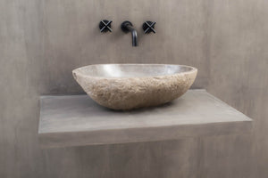 Farger og former hentet fra naturen har en beroligende effekt og passer derfor perfekt på badeværelset. Bring frem den gode følelsen av ro og harmoni med en håndlaget servant i nydelig naturstein.