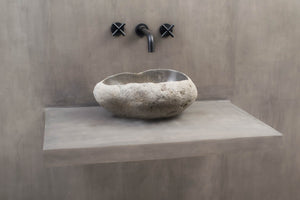 Steinvask - Unik servant i naturlig formet elvestein fra Bali.