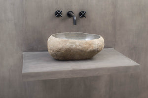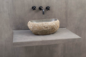 Steinvask - Unik servant i naturlig formet elvestein fra Bali.