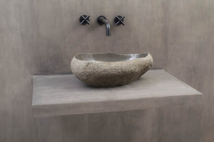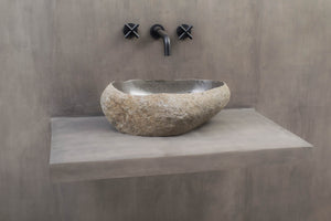 Steinvask - Unik servant i naturlig formet elvestein fra Bali.