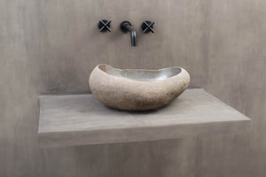 Steinvask - Unik servant i naturlig formet elvestein fra Bali.
