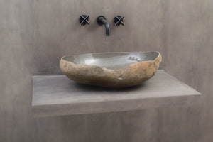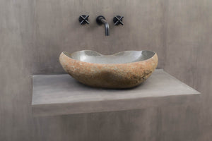 Steinvask - Unik servant i naturlig formet elvestein fra Bali.