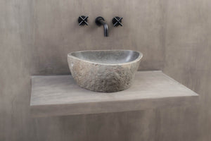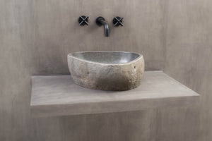 Steinvask - Unik servant i naturlig formet elvestein fra Bali.