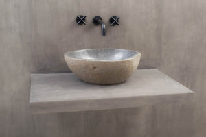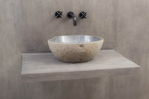 Steinvask - Unik servant i naturlig formet elvestein fra Bali.