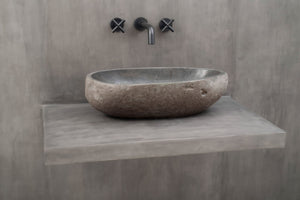Farger og former hentet fra naturen har en beroligende effekt og passer derfor perfekt på badeværelset. Bring frem den gode følelsen av ro og harmoni med en håndlaget servant i nydelig naturstein.