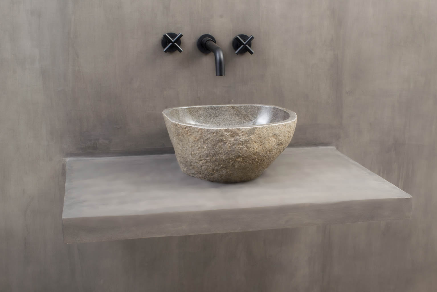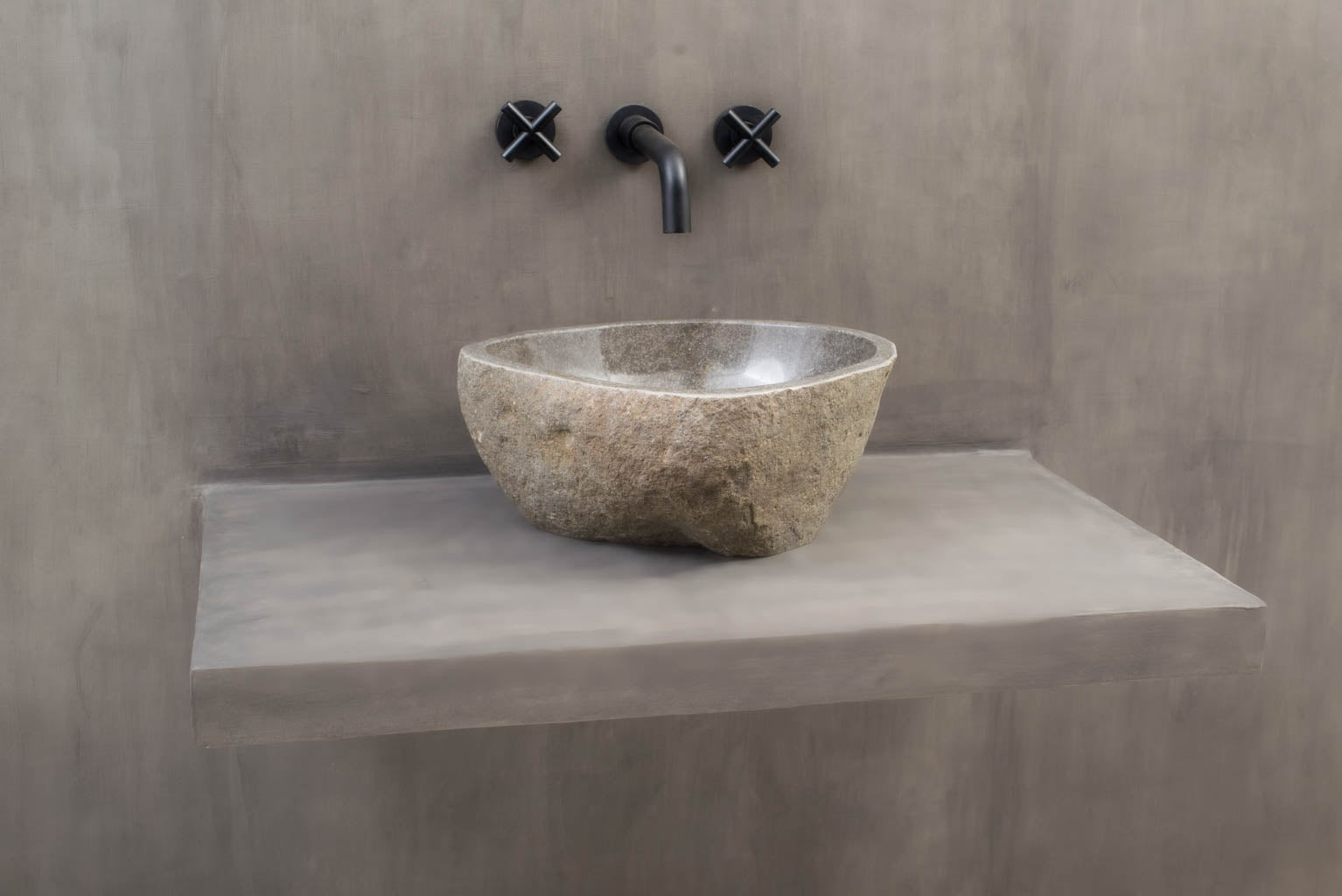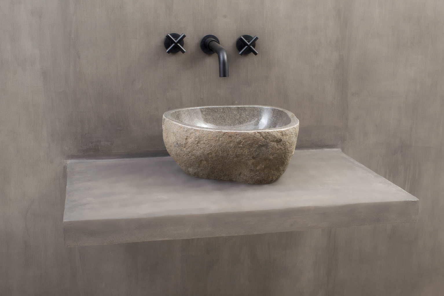 Steinvask - Unik servant i naturlig formet elvestein fra Bali.