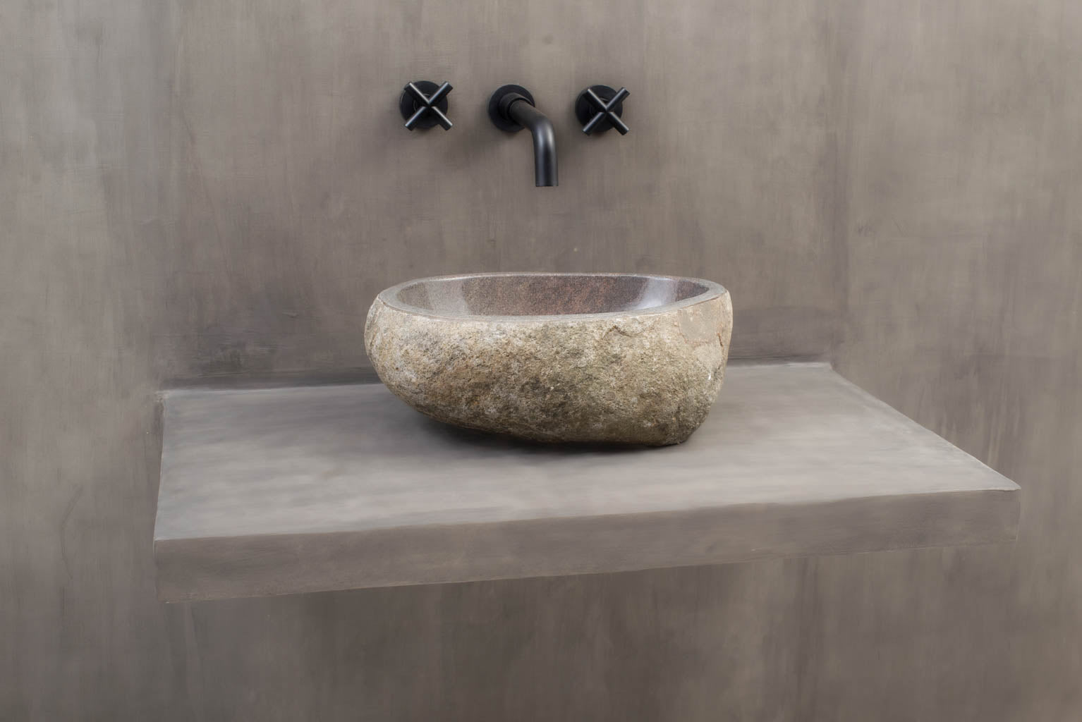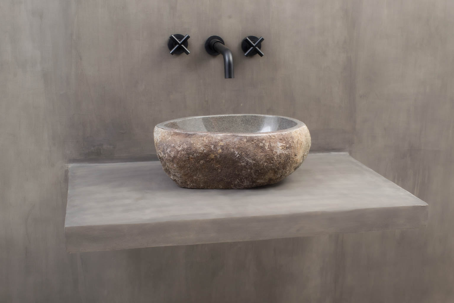 Steinvask - Unik servant i naturlig formet elvestein fra Bali.