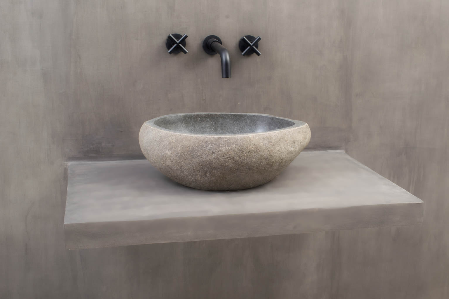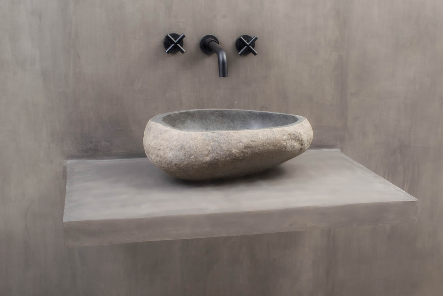 Steinvask - Unik servant i naturlig formet elvestein fra Bali.