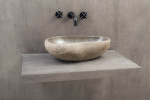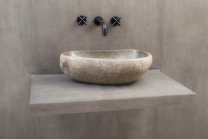 Farger og former hentet fra naturen har en beroligende effekt og passer derfor perfekt på badeværelset. Bring frem den gode følelsen av ro og harmoni med en håndlaget servant i nydelig naturstein.
