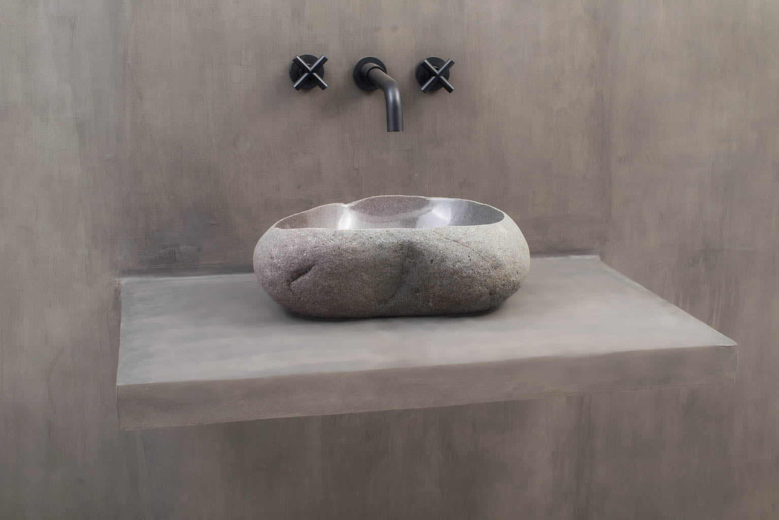 Steinvask - Unik servant i naturlig formet elvestein fra Bali.