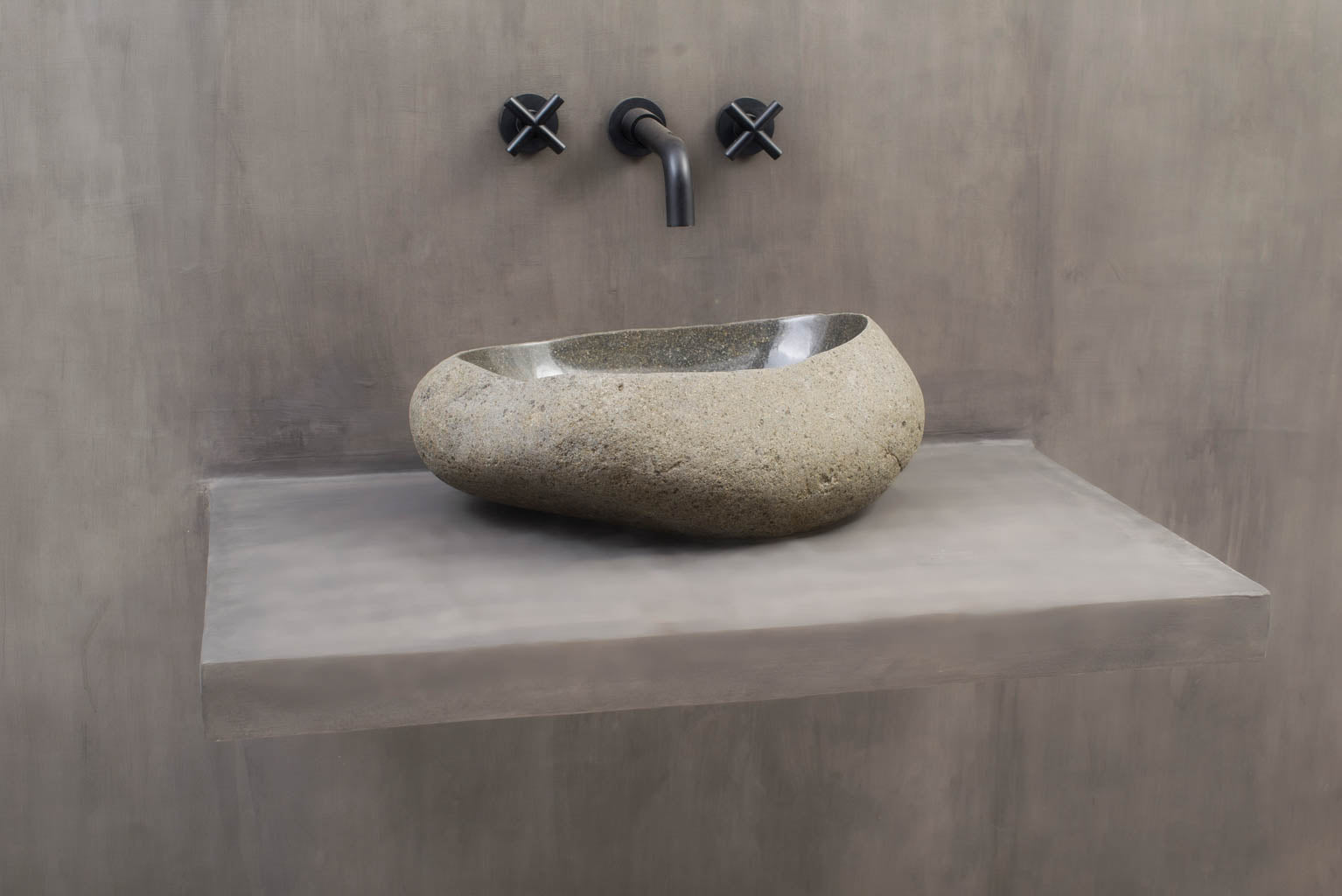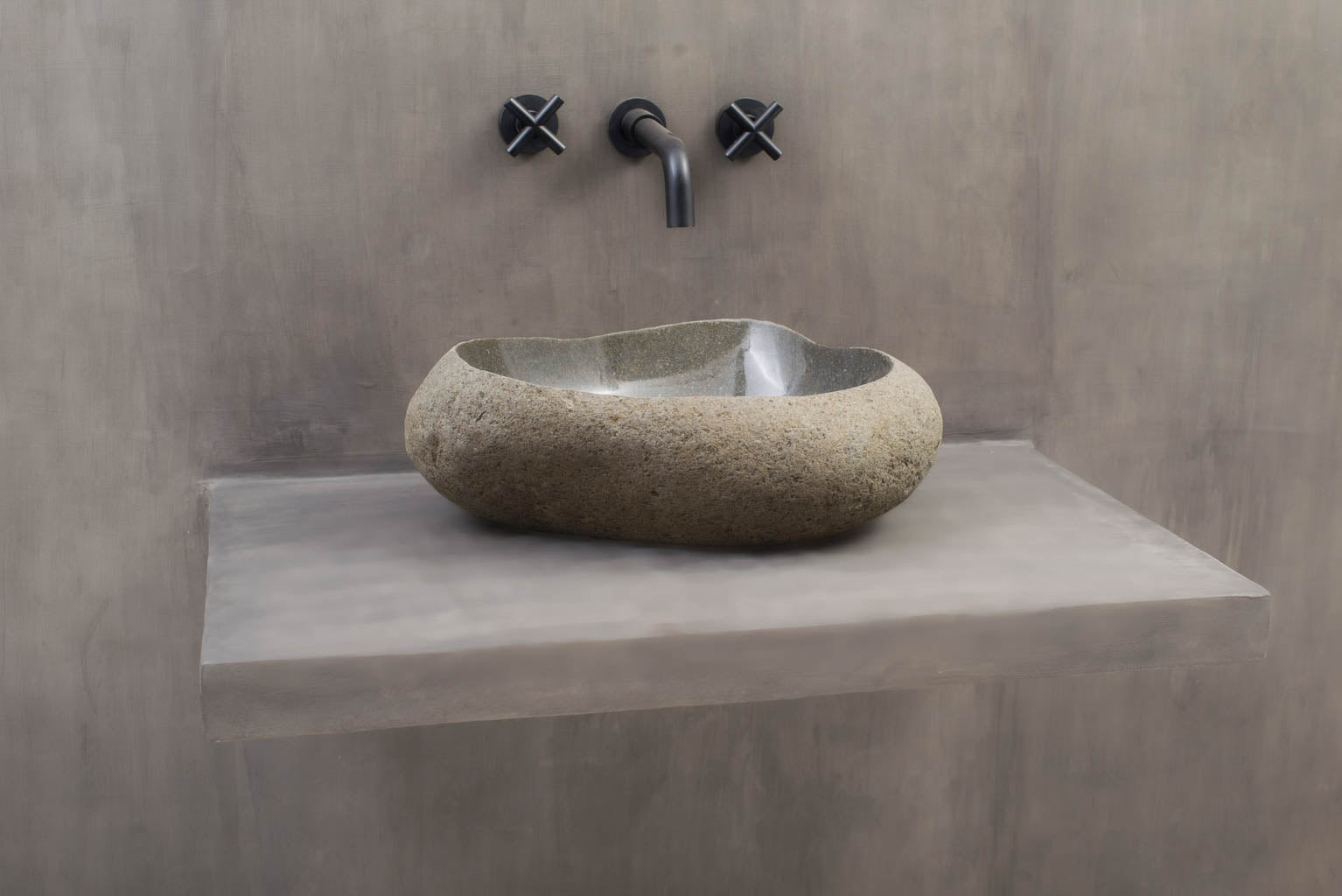 Steinvask - Unik servant i naturlig formet elvestein fra Bali.