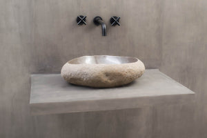 Steinvask - Unik servant i naturlig formet elvestein fra Bali.